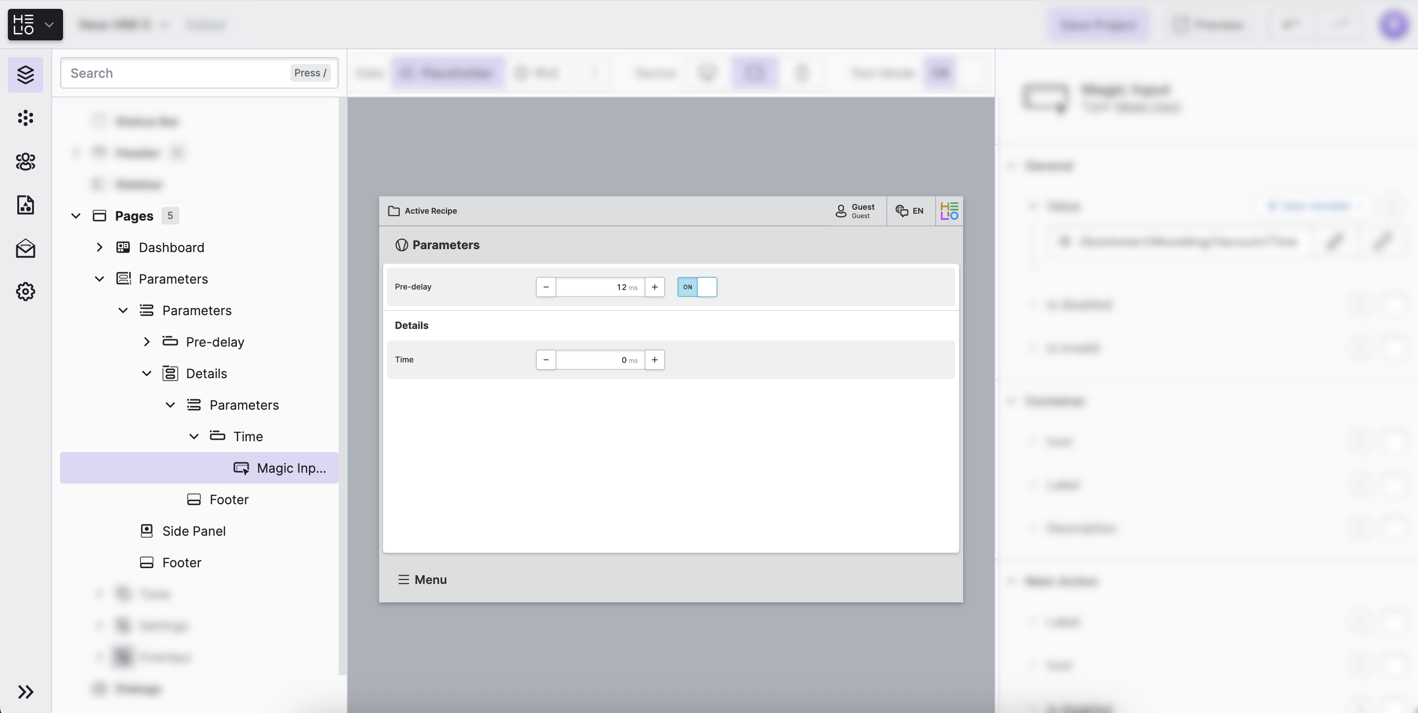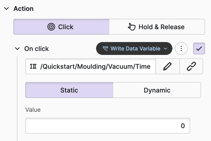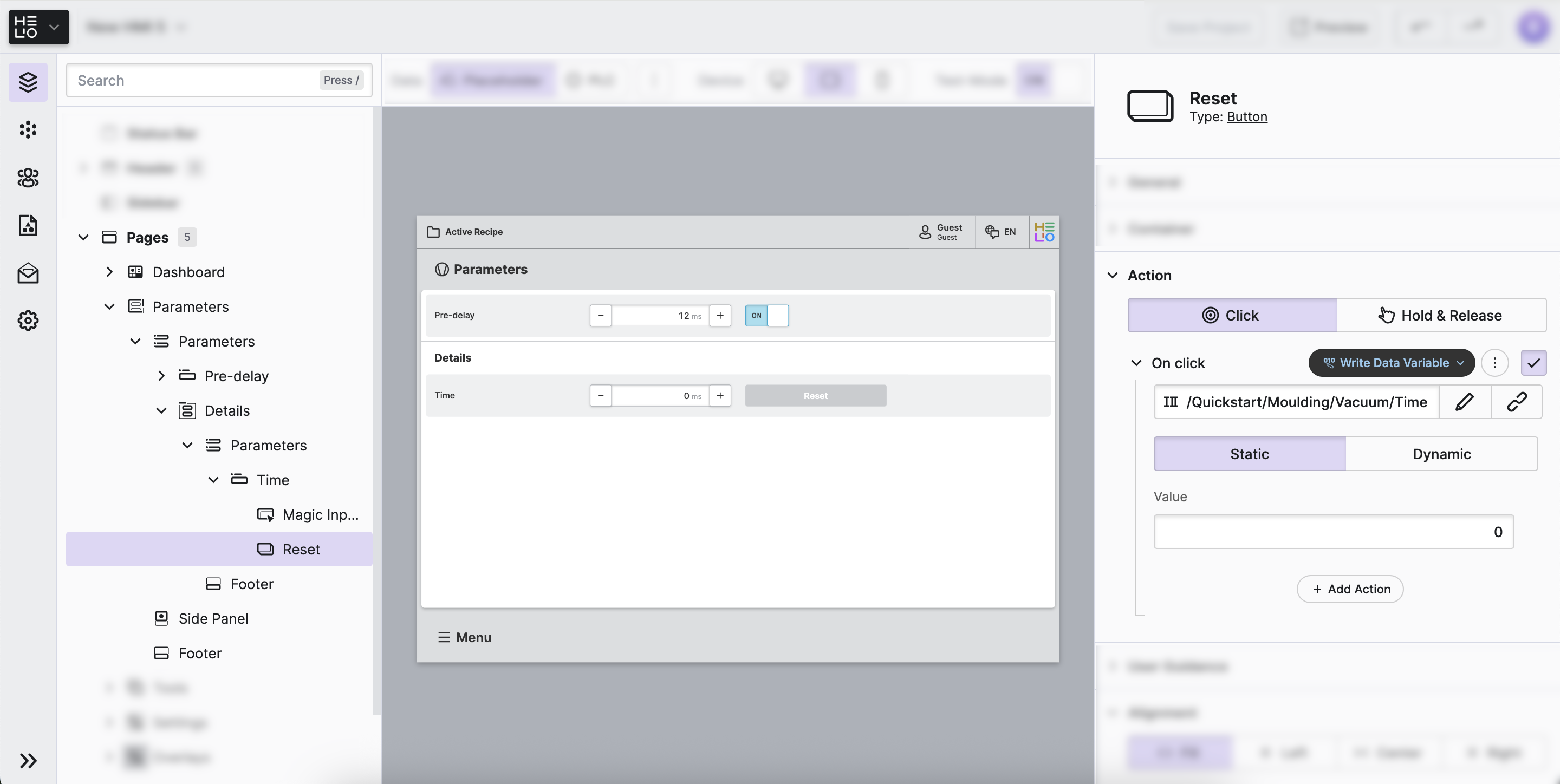 After editing the “Time” Data Variable our operators may need to reset the variable, we will achieve this by adding a button to the parameter.