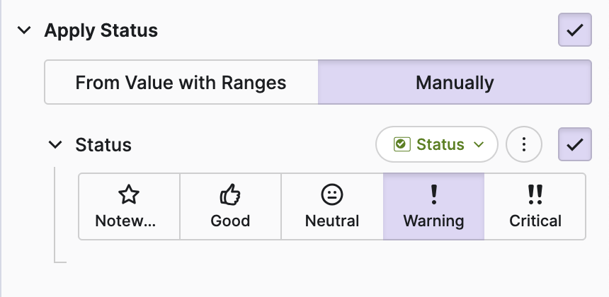 We simply added a Open Page as Overlay Action to the module and linked that to a Parameter Page with some status information and a footer action.