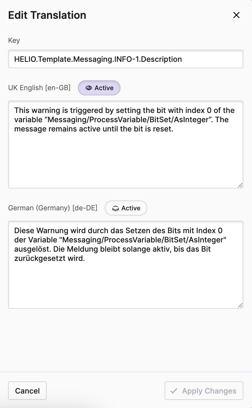 Finally, let's talk about the Info level and create a sample Message Type for it. These messages are sent to operators to make things transparent