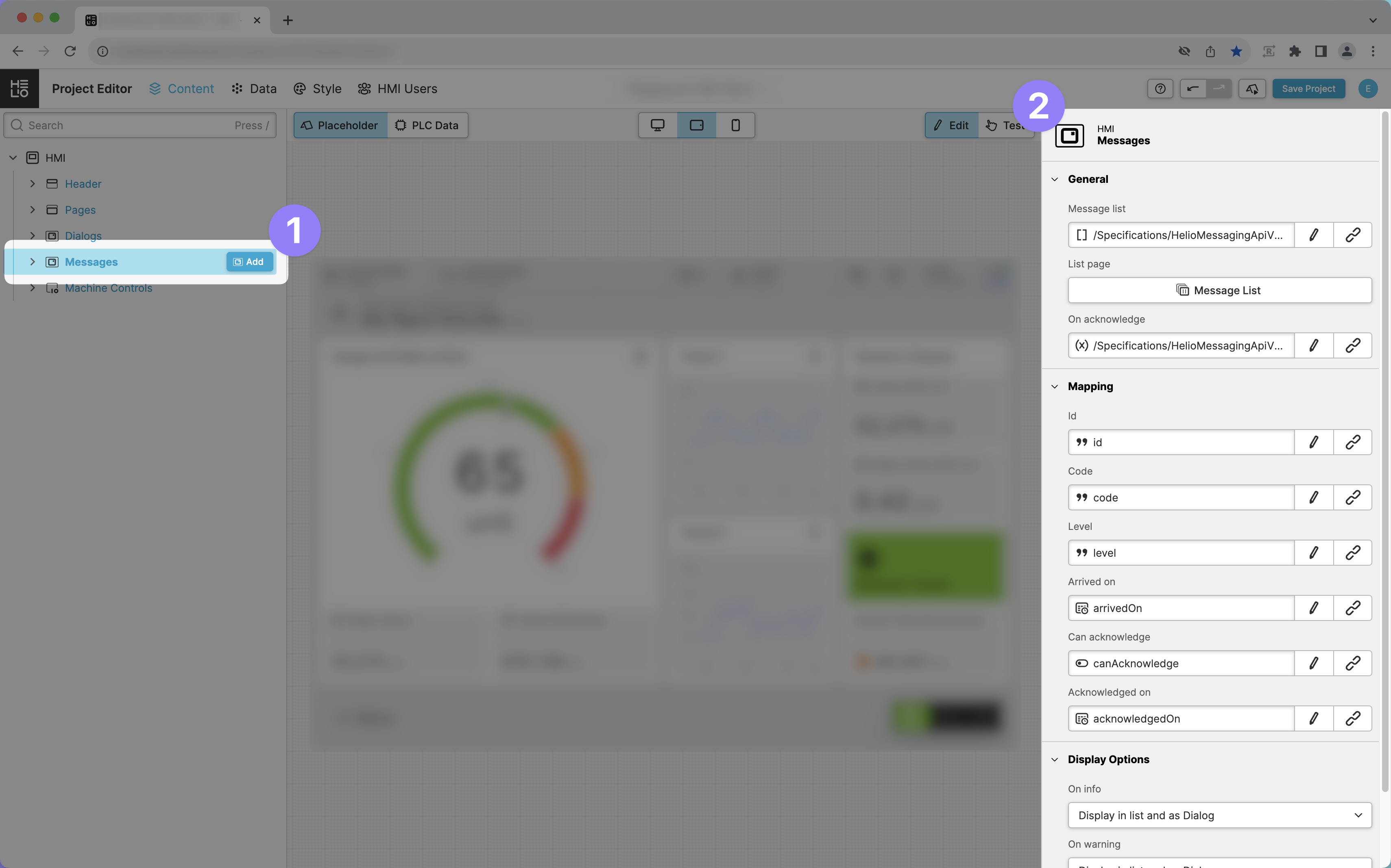 Once you've defined your API and Data, it's time to connect them to your HMI. To do this, switch to the Content View in the Project Editor.