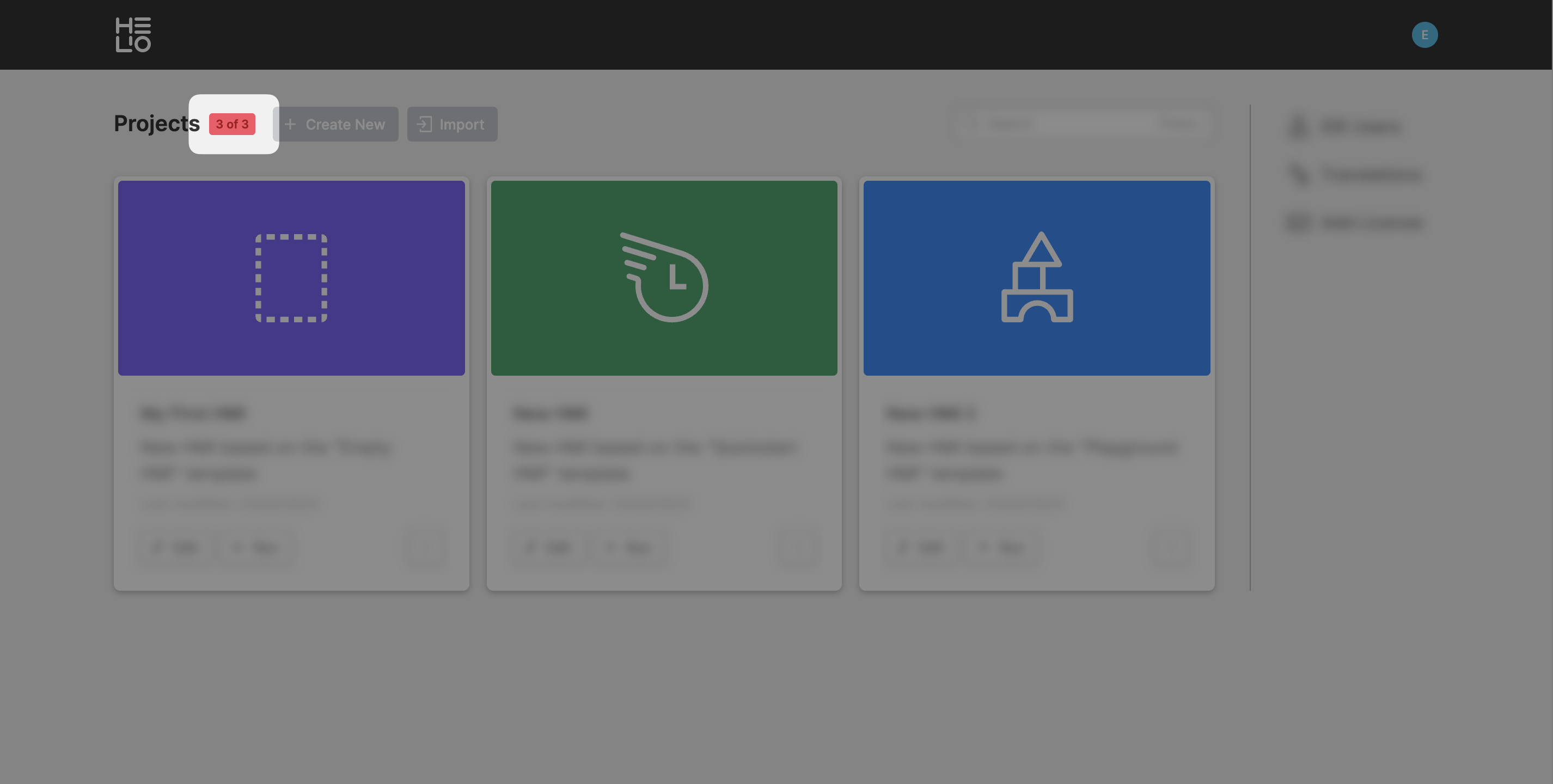 How can I check the current limits of the project I am working on in the HELIO IDE?