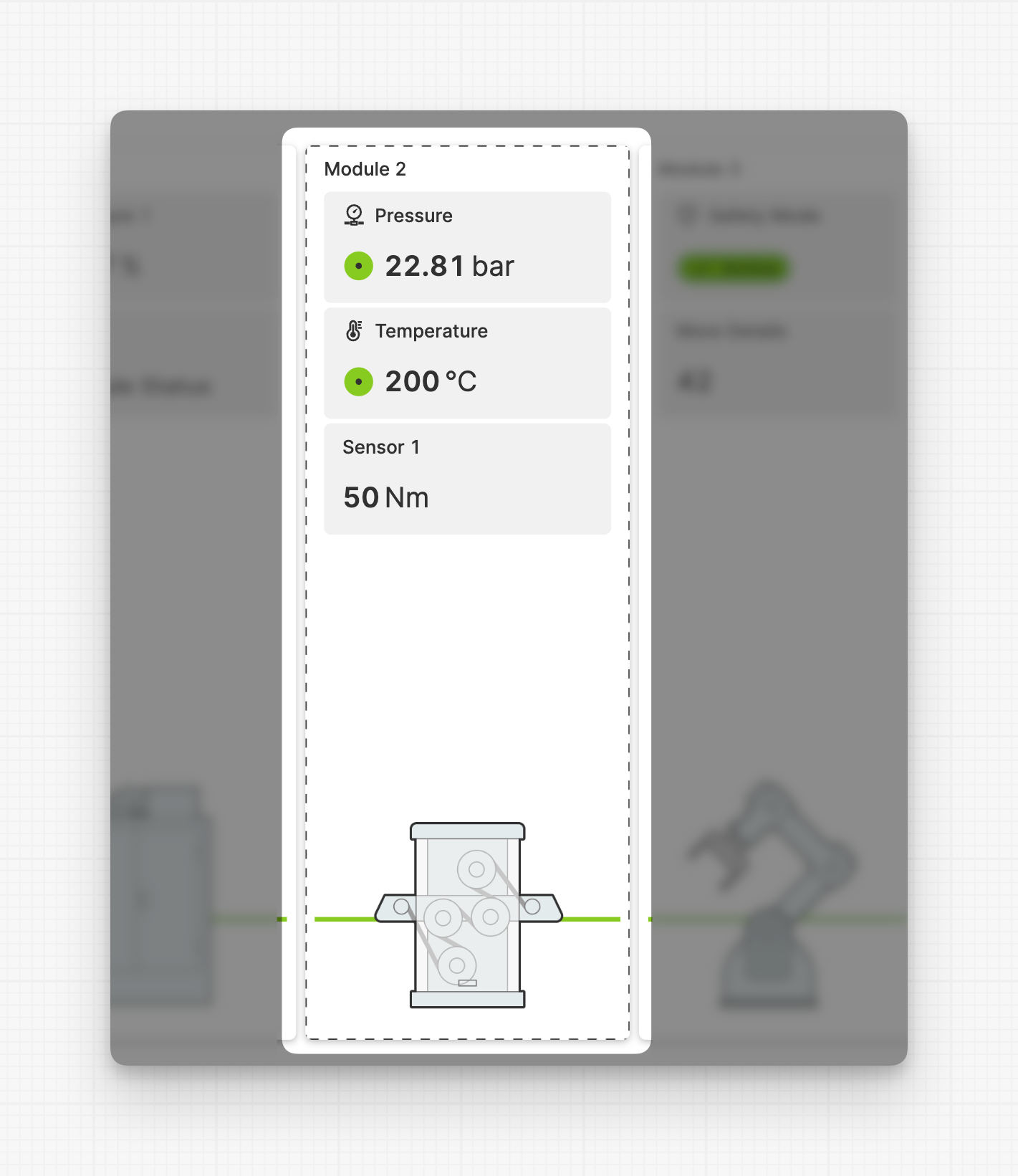Adding interactive elements to a detailed view like this will only make it more visually cluttered. To simplify the view, highlight only the most important figures and statuses. Place any interactive elements on separate pages that can be shown as a layer over the main content using the Open Page as Overlay Action