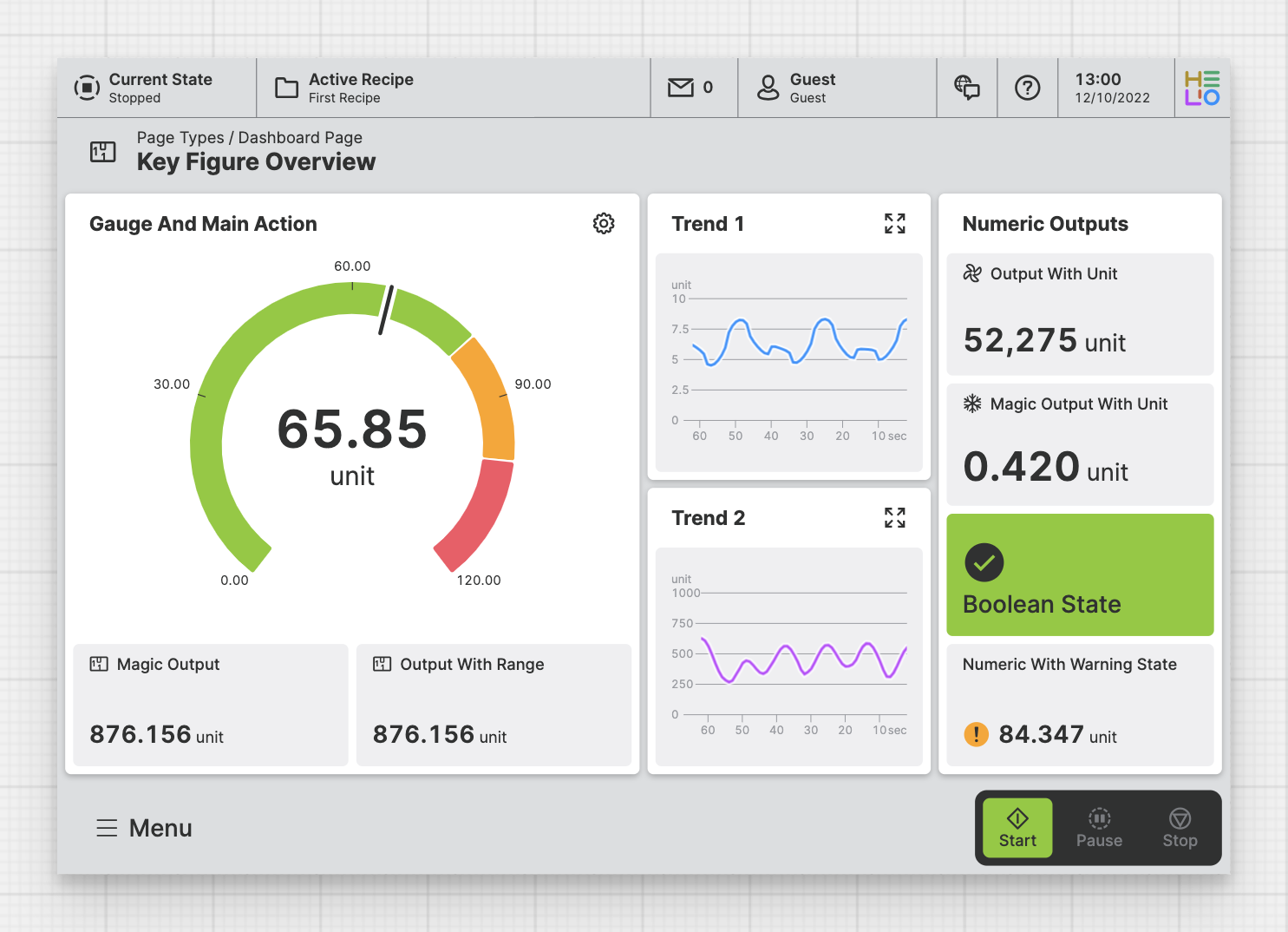 A Dashboard Page provides operators with an overview of the machine performance, even from