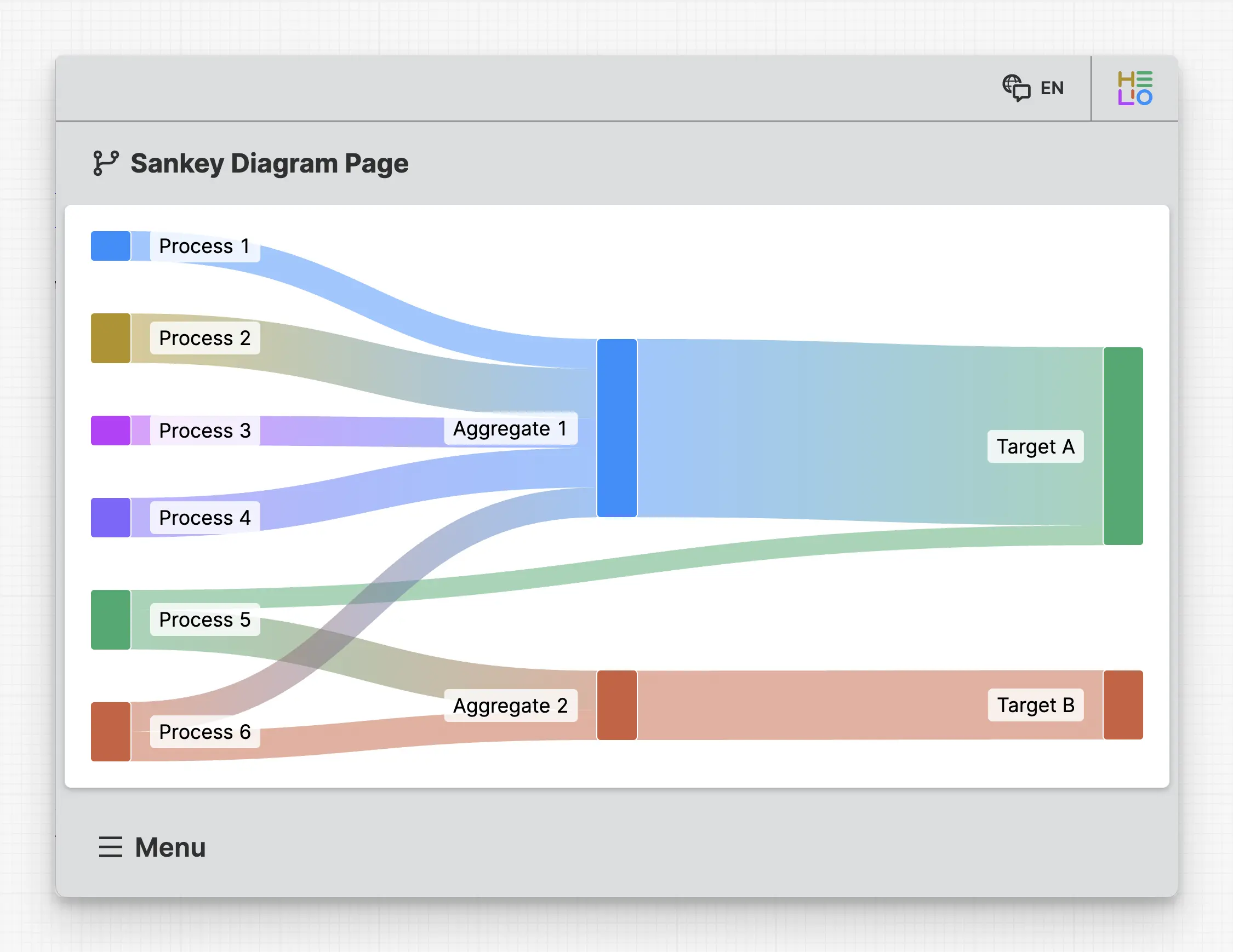 A Sankey Diagram Page displays flows between multiple nodes where link