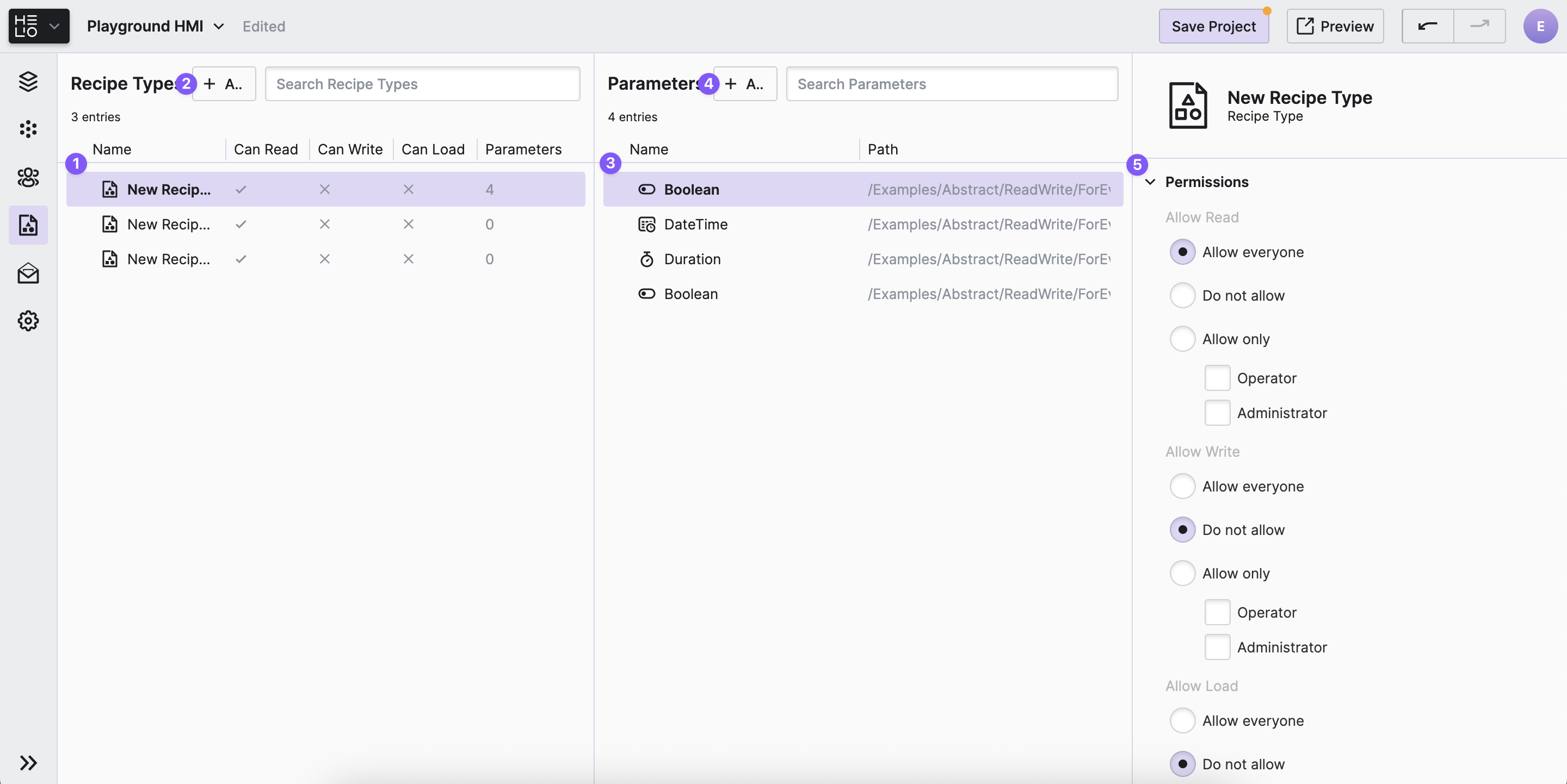 +button to add new parameters to the recipe type.Set the restrictions for the recipe type.