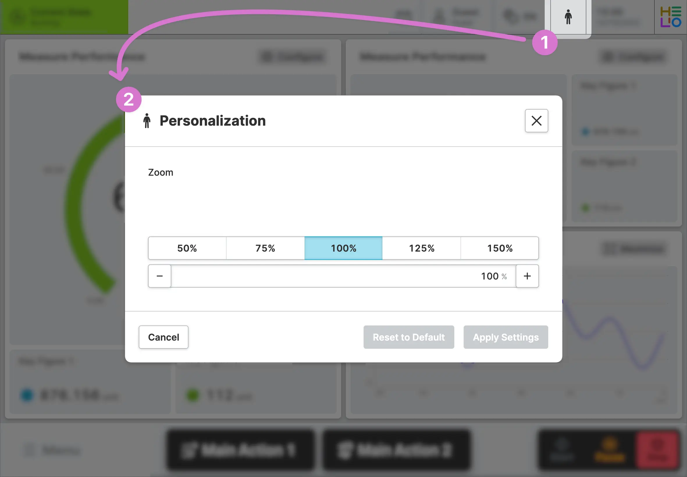 Starting With Zoom: This first version launches with Zoom to take control of text sizing. Operators can adjust the zoom across the HMI to match their readability preferences – whether they need larger text or want to fit more information on screen. Settings persist across sessions and devices, so configure once and you're done.